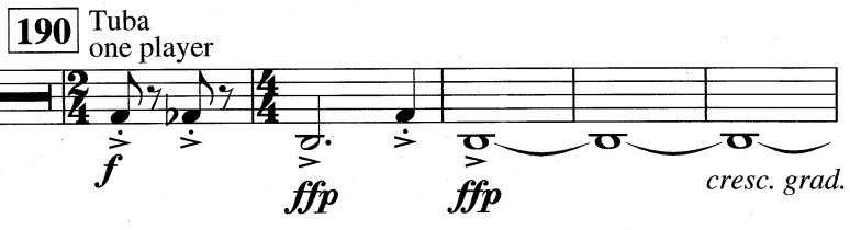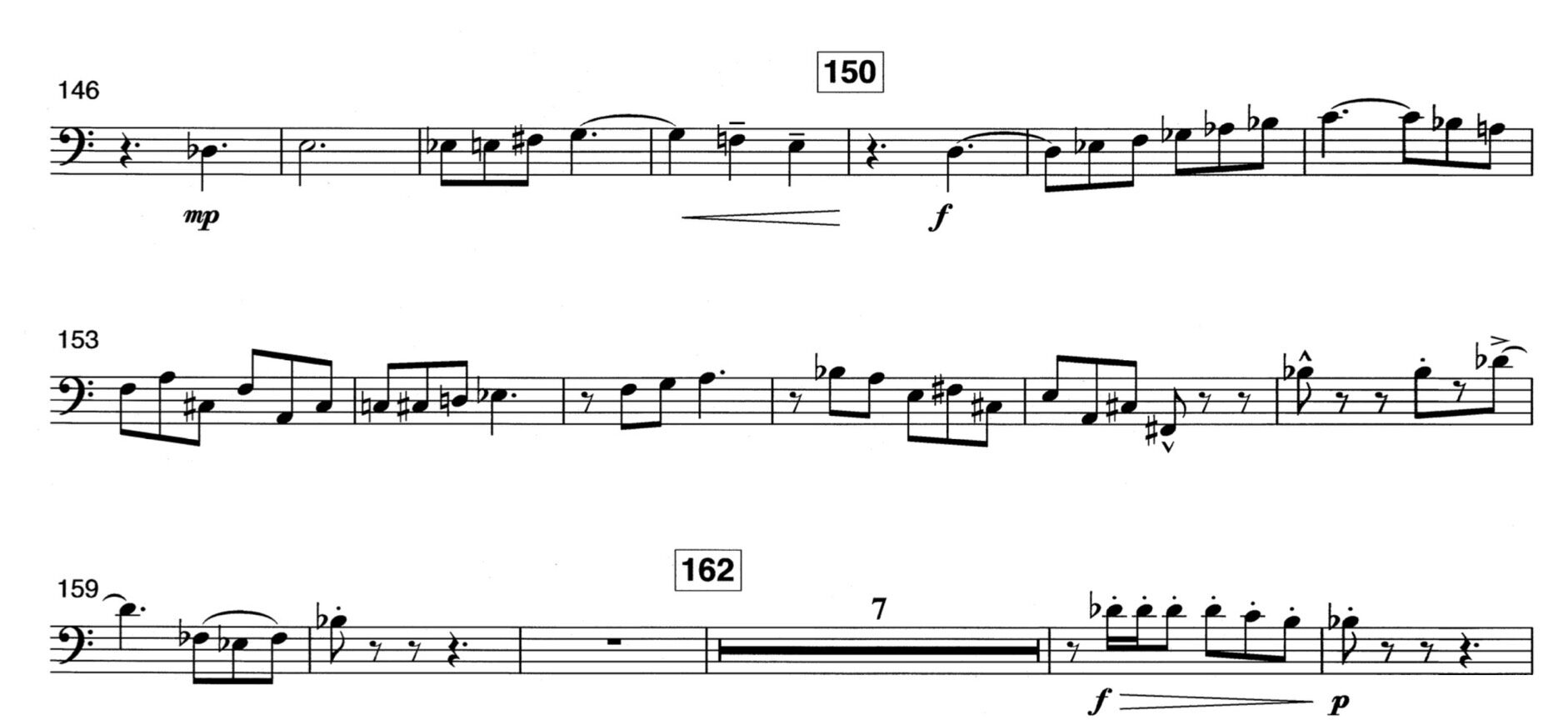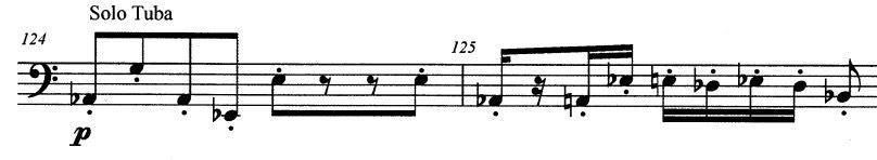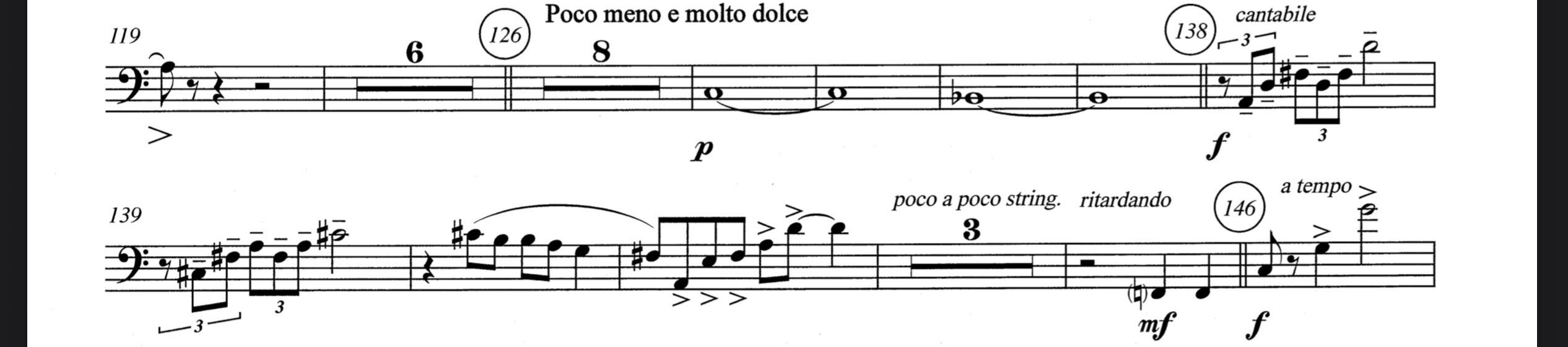 チューバ11ページ、コントラバス12ページに及ぶ大伴奏祭りです!コントラバスにはトレモロがたくさん、「手首が取れた」という声を頂いています。チューバは4楽章冒頭にグレゴリオ聖歌を主題としたメロディを吹いています。最後は荘厳な伴奏でffffくらい吹くでしょう!感動確定です。絶対聴きにきてください!